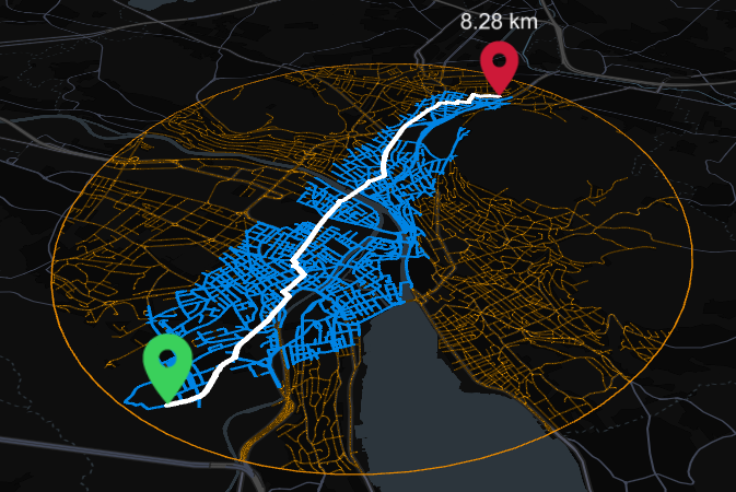 This animated visualisation demonstrates how different pathfinding algorithms navigate real-world terrain for journey planning. It caters for motorists, cyclists, and pedestrians, giving you the option to find the shortest path (distance) or the fastest path (time) between two locations.